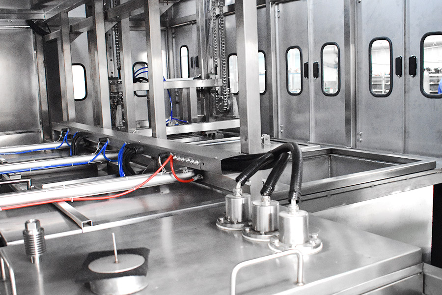 該設(shè)備有自動上下料及轉(zhuǎn)角系統(tǒng)、超聲波清洗系統(tǒng),自動拋動、自動溢流和油污分離裝置,噴淋系統(tǒng)、自動高壓切水系統(tǒng)、自動烘干系統(tǒng)。機械手自動輸送系統(tǒng)采用高精度直線導(dǎo)軌配合高精度位置檢測傳感器,機械手可以準確的實現(xiàn)工件的抓取和放置。自動進排液和自動加溫系統(tǒng)完全實現(xiàn)了無人干預(yù),自動運行,很大程度上降低了工人的勞動強度。先進的霧氣處理系統(tǒng)可以將清洗時產(chǎn)生的霧氣冷凝回流,空氣經(jīng)過濾和活性炭吸附后排出。