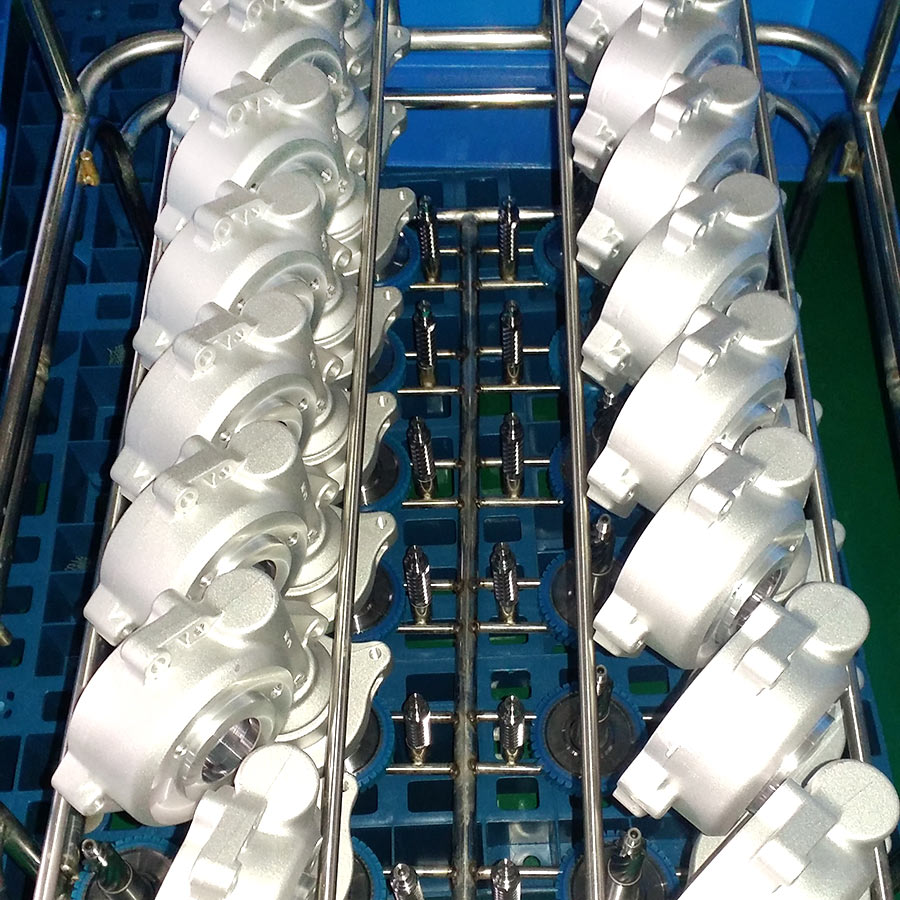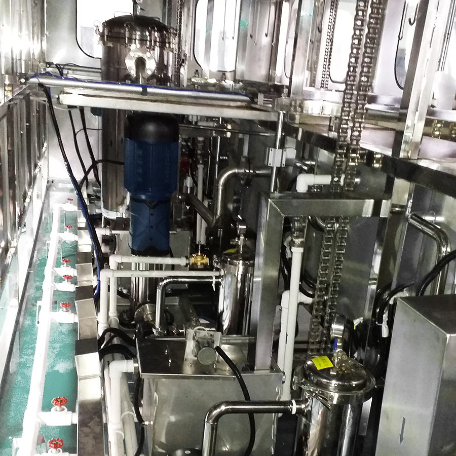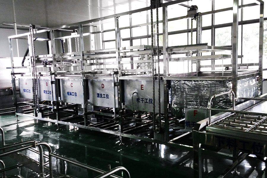 該設(shè)備有自動(dòng)上下料及轉(zhuǎn)角系統(tǒng)、超聲波清洗系統(tǒng),自動(dòng)拋動(dòng)、自動(dòng)溢流和油污分離裝置,噴淋系統(tǒng)、自動(dòng)高壓切水系統(tǒng)、自動(dòng)烘干系統(tǒng)。機(jī)械手自動(dòng)輸送系統(tǒng)采用高精度直線導(dǎo)軌配合高精度位置檢測(cè)傳感器,機(jī)械手可以準(zhǔn)確的實(shí)現(xiàn)工件的抓取和放置。自動(dòng)進(jìn)排液和自動(dòng)加溫系統(tǒng)完全實(shí)現(xiàn)了無(wú)人干預(yù),自動(dòng)運(yùn)行,很大程度上降低了工人的勞動(dòng)強(qiáng)度。先進(jìn)的霧氣處理系統(tǒng)可以將清洗時(shí)產(chǎn)生的霧氣冷凝回流,空氣經(jīng)過(guò)濾和活性炭吸附后排出。
